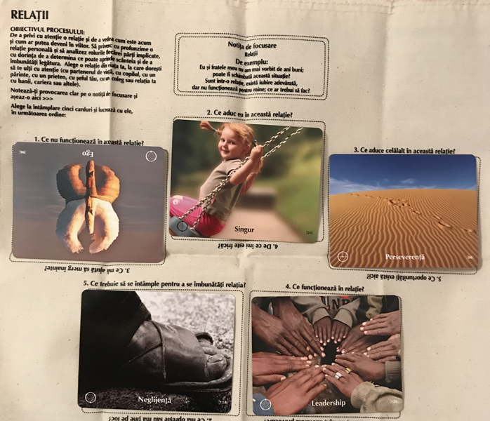 Îmi amintesc că, acolo, timp de 3 ore, mi-am construit viața din carduri cu imagini, care aveau rolul de a stimula imaginația pentru a aduce mai multă conștientizare și noi perspective. Am făcut o călătorie interesantă, pornind de la o stare prezentă și pășind încet și cu grijă către o stare dorită. Pe traseul parcurs au existat și momente de blocaj și confuzie, însă eram rugați să extragem din cardurile cu întrebari și cuvinte, care aveau tocmai acest rol, de a debloca uși interioare și a ne conduce cât mai aproape de noi înșine.